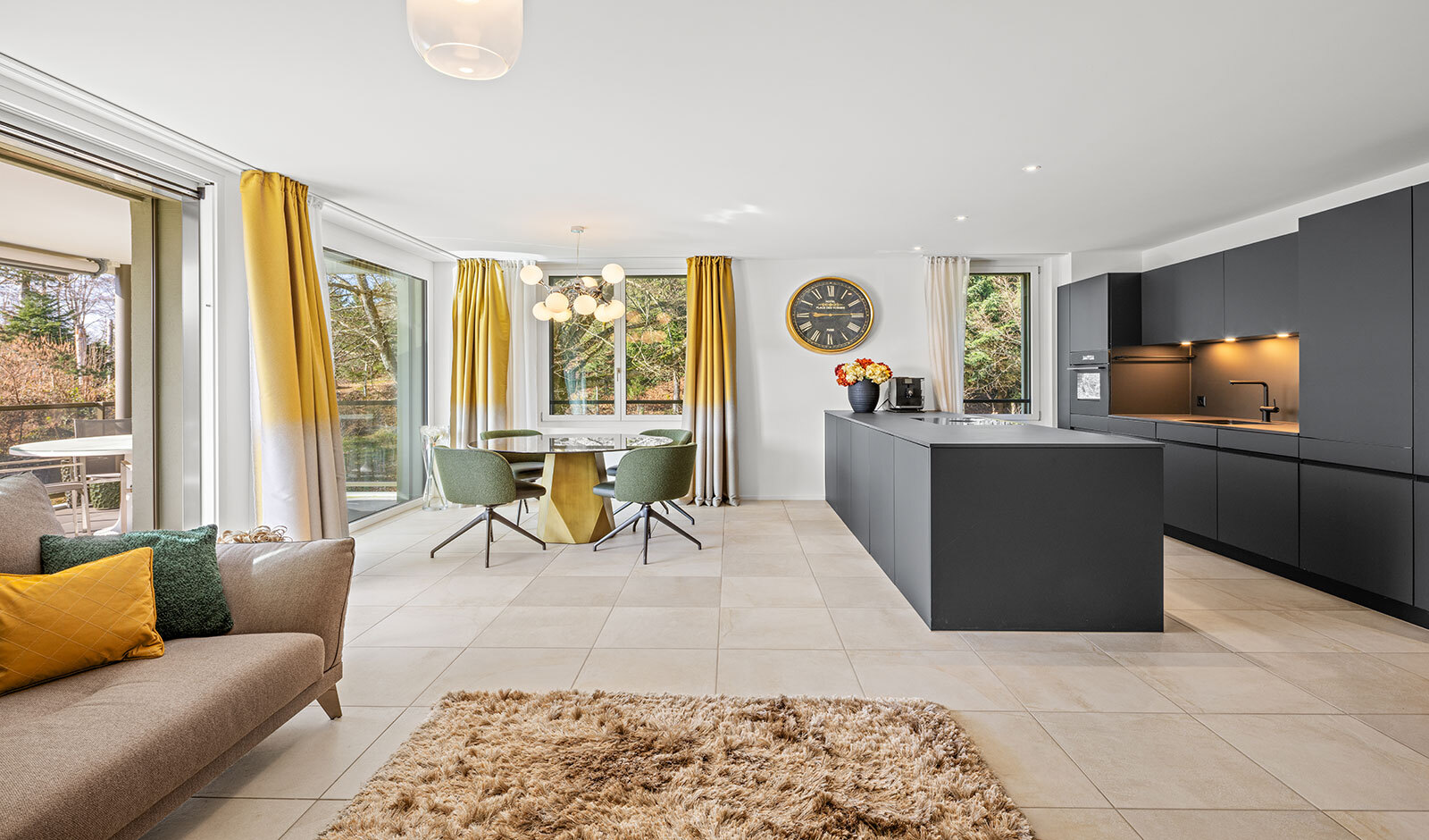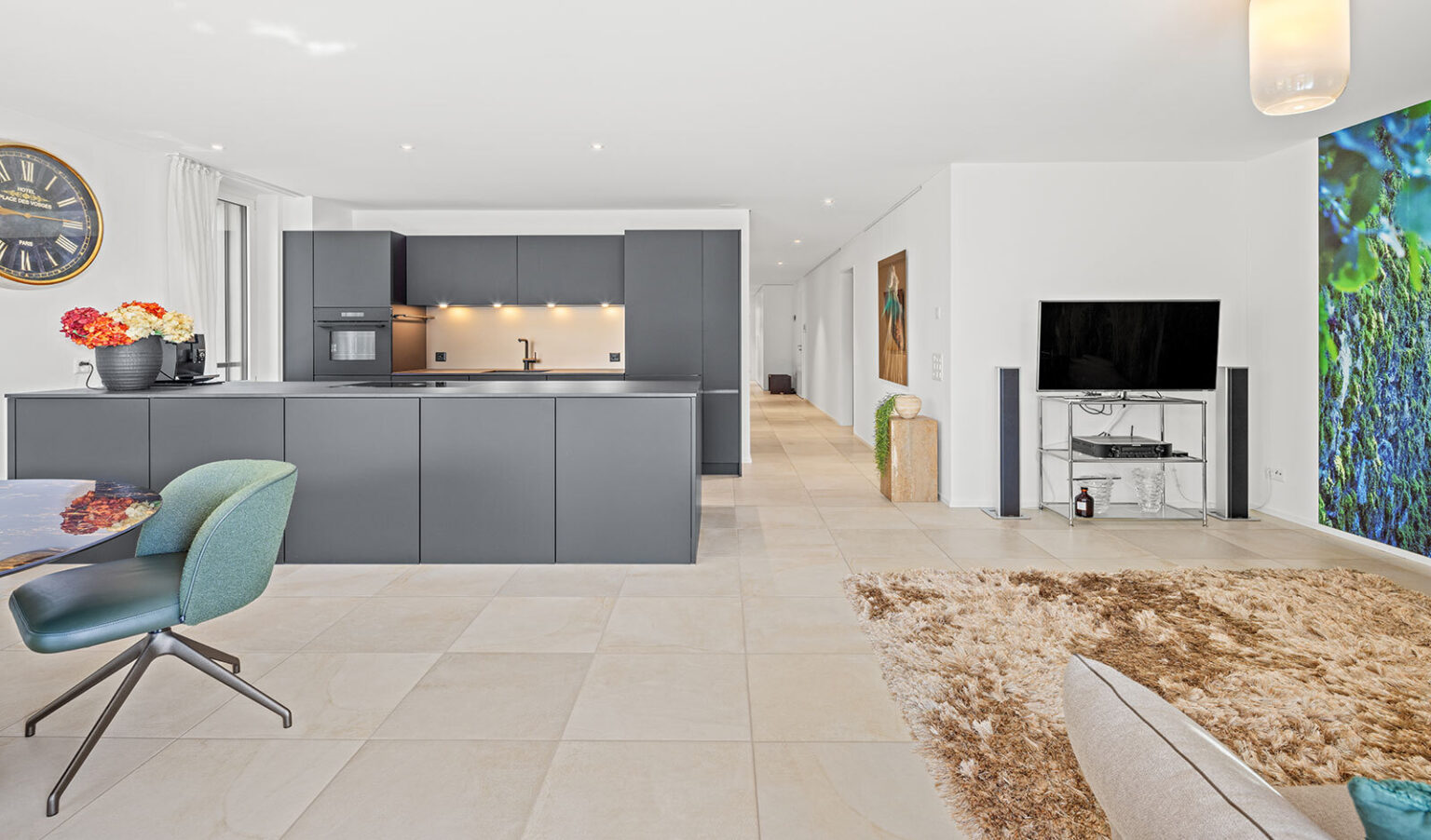 This modern 4.5-room flat impresses with its clear architecture, high-quality construction and as-new condition (built in 2023). The well thought-out floor plan and the spacious living and dining area with open-plan kitchen create a pleasant, open feeling of space and form the centre of daily living. Generous window areas provide plenty of natural light and give the rooms a bright, friendly atmosphere.