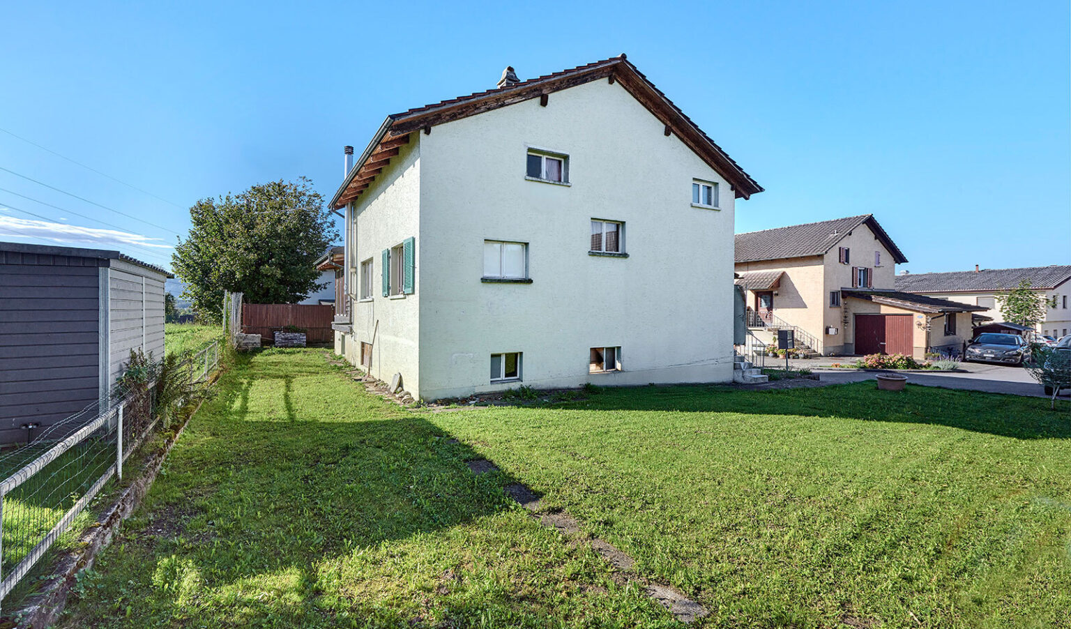 If you can imagine a new build, this property is perfect for you. There is a building project that has already been approved. The projected four-storey building was designed with a pitched roof. Three almost identical 3.5-room flats, each measuring 80 m², are planned on the upper floors. The basement includes three car parking spaces, cellar compartments, a separately accessible bicycle room and the technical rooms. The building could also be planned as a multi-generation house.