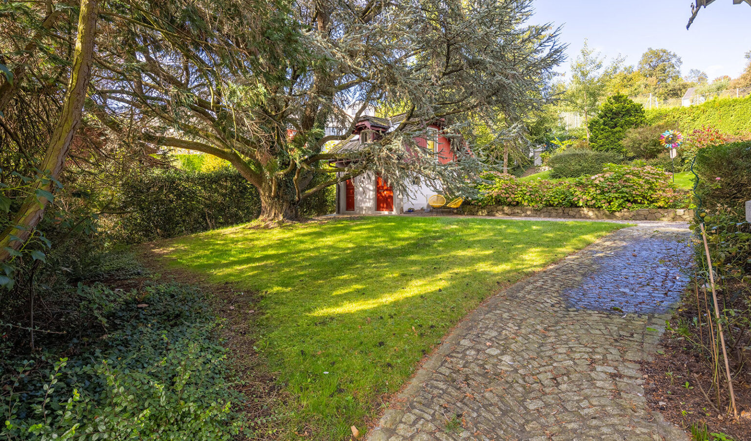 Living like in a castle: residing in a property like this is a special affair of the heart. The charming historicist villa, built in 1890, draws on stylistic elements from the late Middle Ages and the Renaissance and is an absolute rarity on the property market. With its historicising architectural features, high ceilings and spacious floor plan, it offers a living experience that is second to none. The property with a living space of 274 m² and ample ancillary areas is wonderfully integrated into a park (1,477 m2 The plot has mature trees, a pond, a stream and two garden sheds, one of which has a sauna.