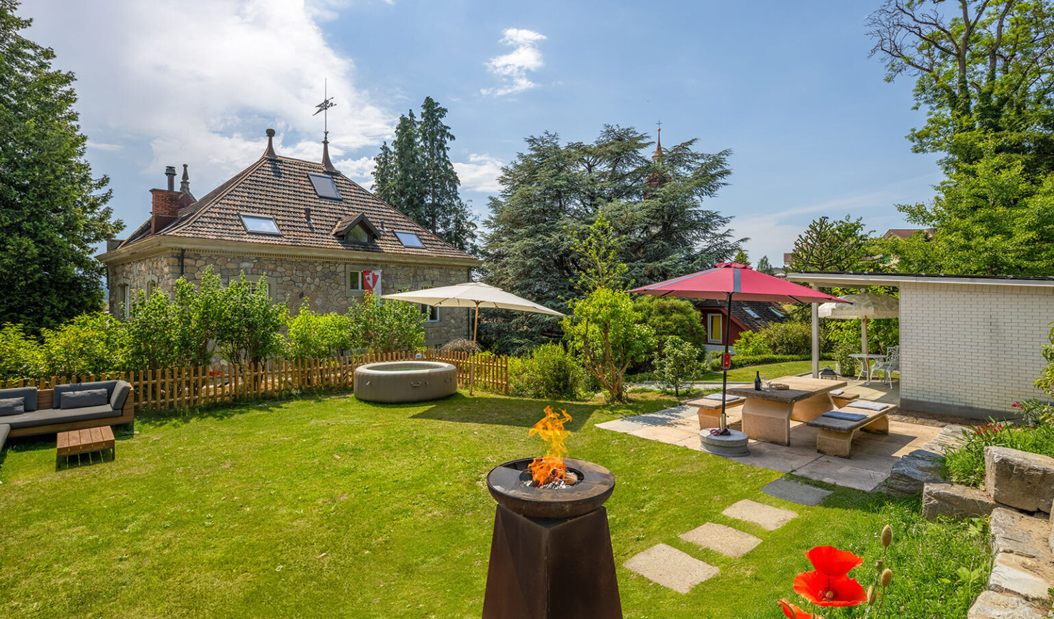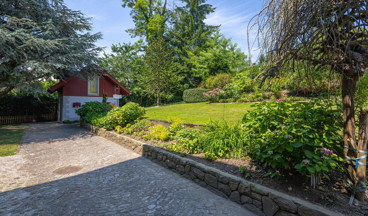 The spacious basement offers storage space, an ideally tempered wine cellar, a laundry room and space for a workshop.