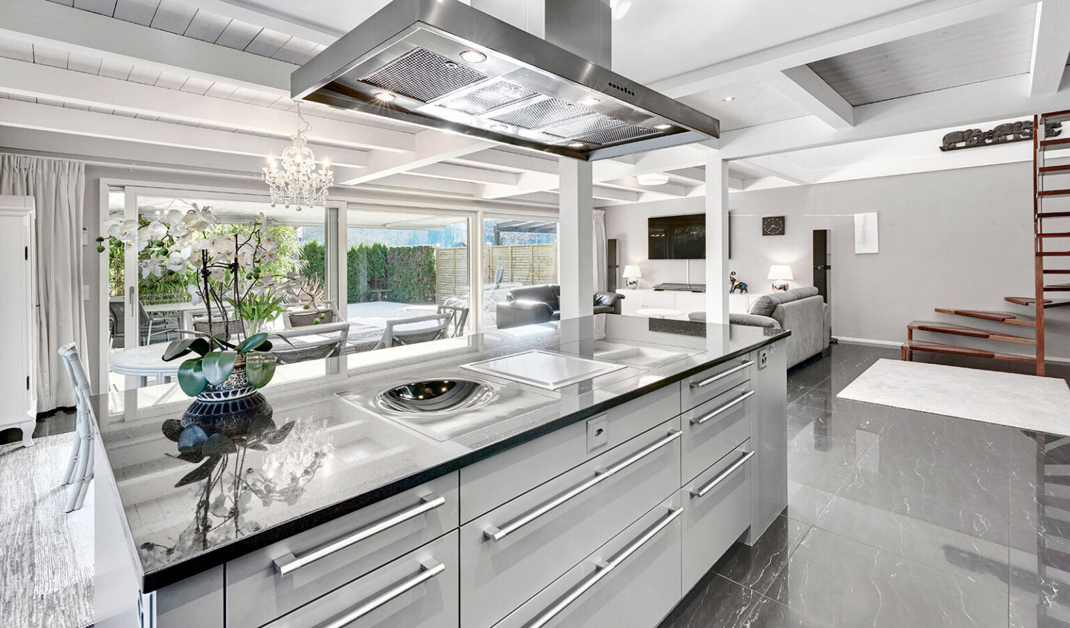 The centrepiece of the house is the large, open-plan kitchen with an elegant cooking island.