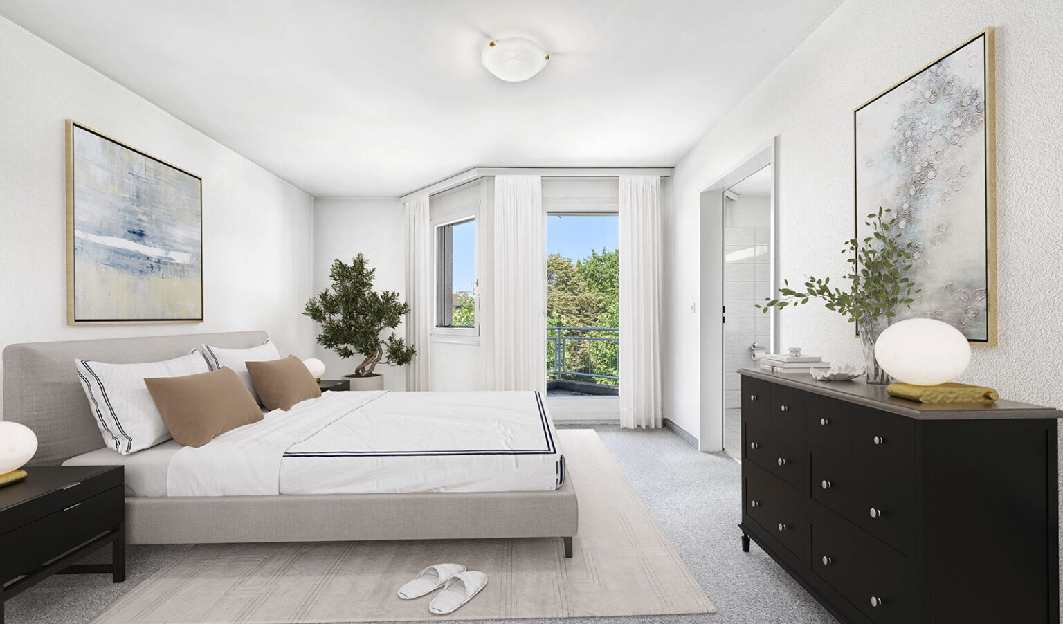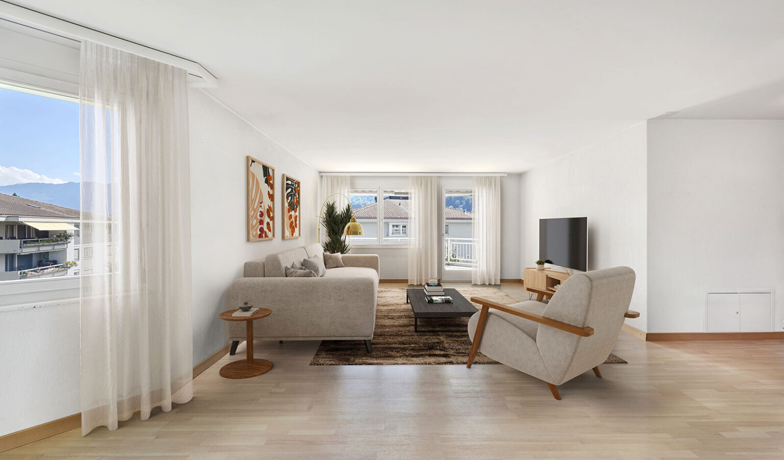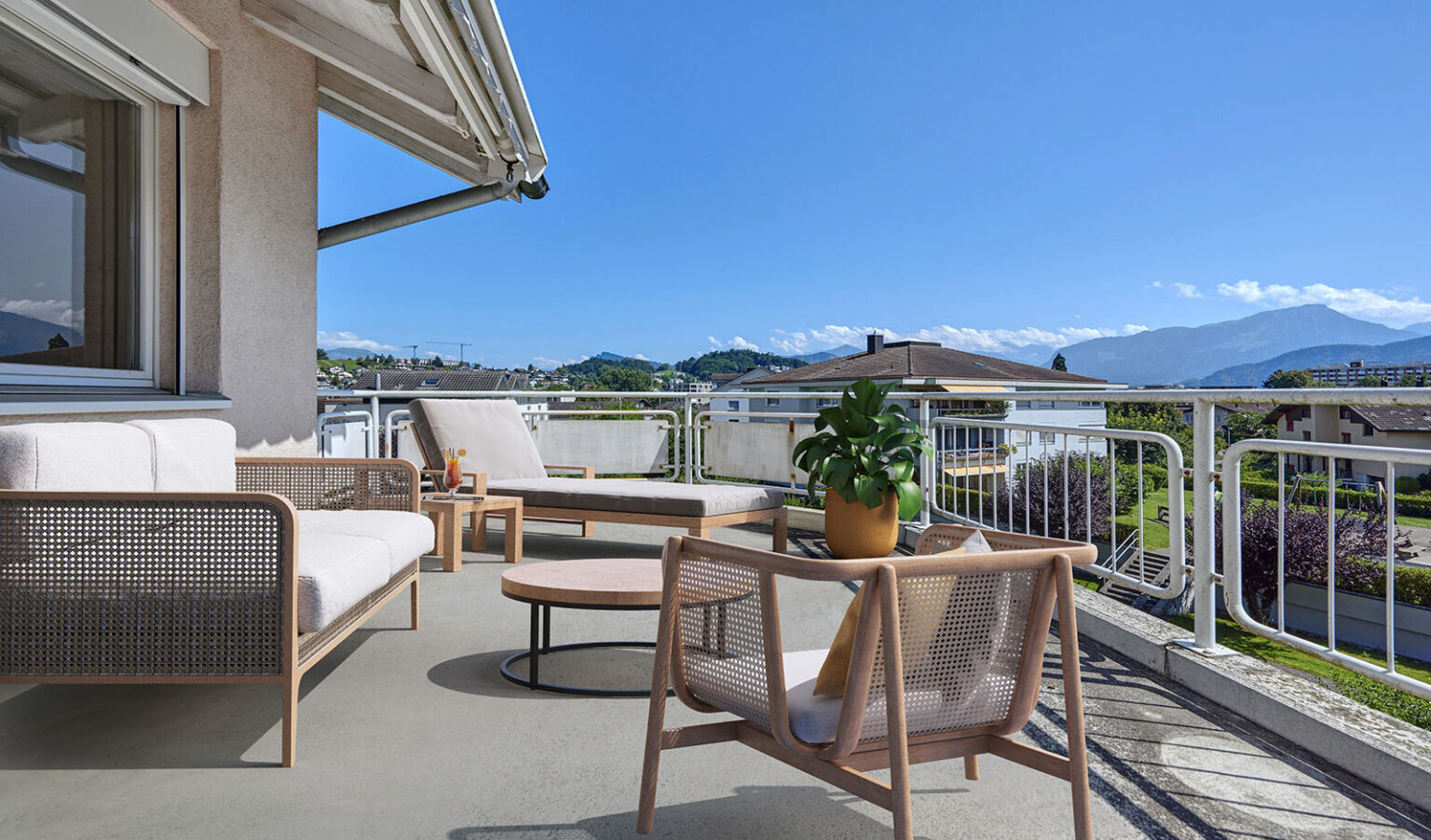 The property has two sunny balconies. One balcony is located in the living area and offers plenty of space for a table and chairs.