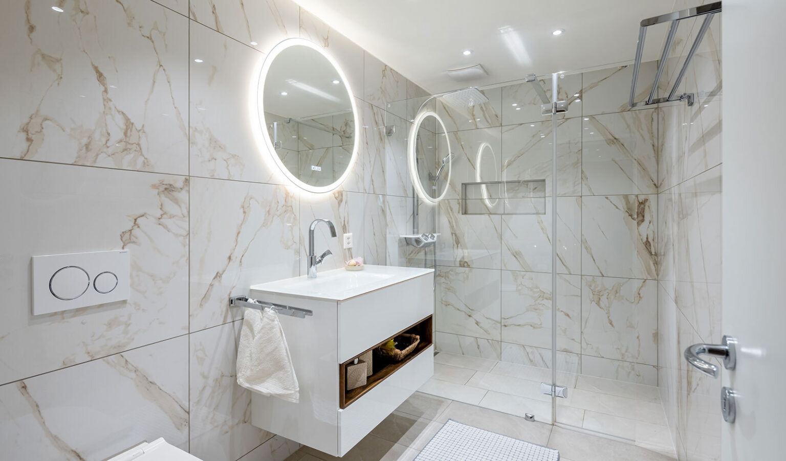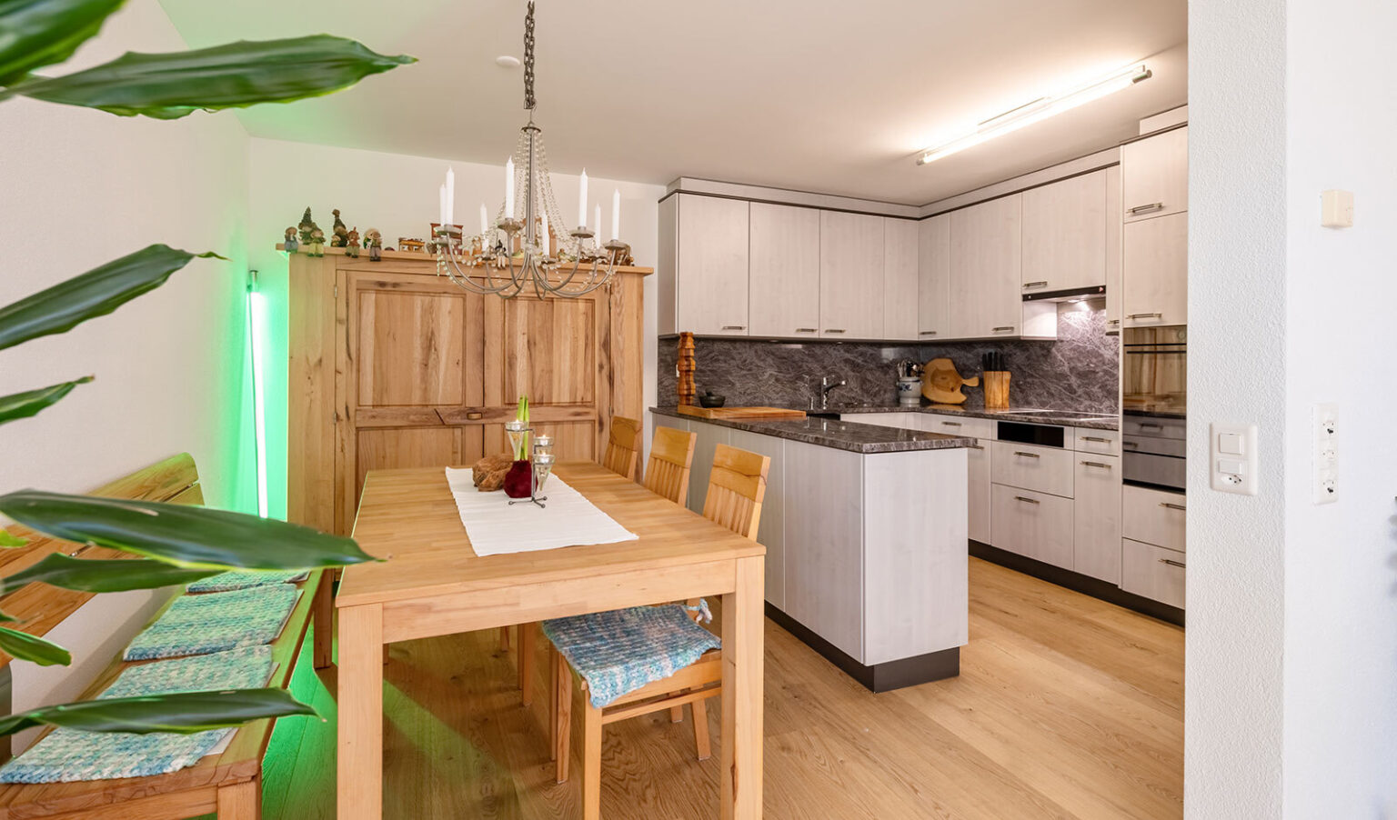 There is a practical utility room in the flat, which can also be used as a small office. From the flat you can easily access your cellar compartment with washing machine and tumble dryer. A parking space in the garage can be purchased with the flat. The new owner of this beautiful flat also benefits from a solar energy system.