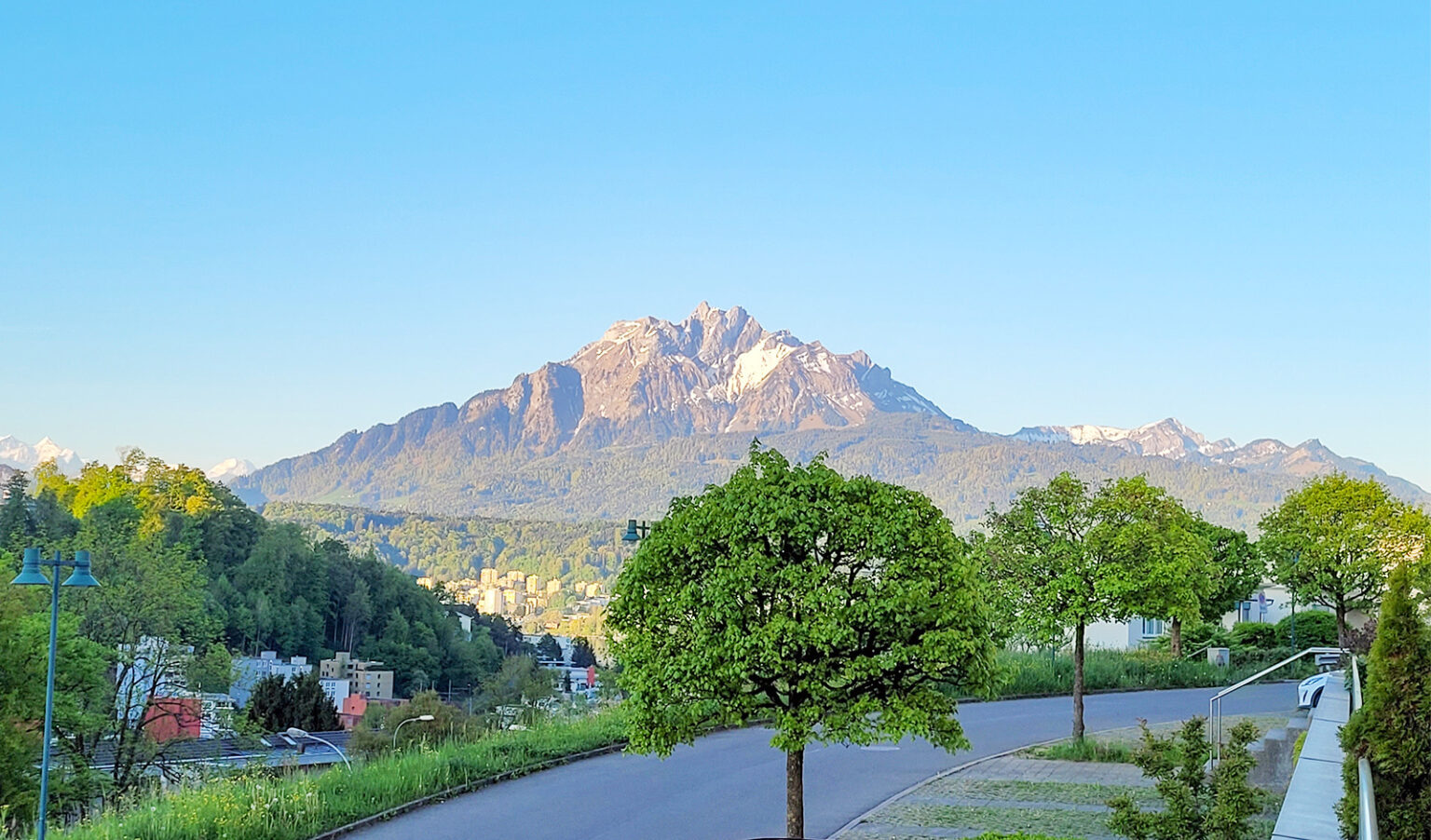 Ein Highlight ist die rund 35 m² grosse, teilweise gedeckte Terrasse. Hier eröffnet sich ein beeindruckendes Panorama mit Blick auf den Pilatus, die Stadt Luzern und das umliegende Grün. Die drei Schlafzimmer verfügen jeweils über einen direkten Zugang zum seitlich ausgerichteten Gartenbereich und bieten dadurch ein hohes Mass an Privatsphäre und Geborgenheit.