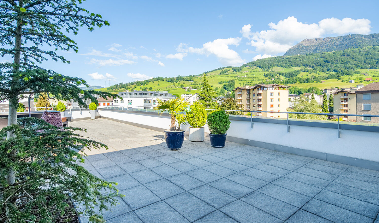 Hoch oben, ohne direkte Nachbarn, geniesst man sein eigenes Reich auf dem Dach des Gebäudes. Ein privater Rückzugsort mit urbanem Flair – ideal für Paare, Familien oder aktive Geniesser, die zentrale Lage schätzen.