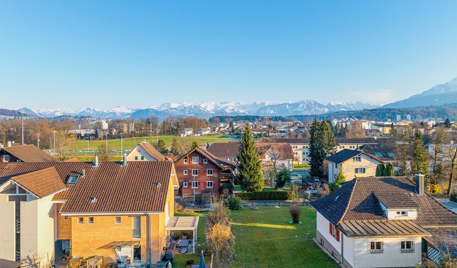 Die 1’101 m² grosse Baulandparzelle mit einer Bestandesliegenschaft in Form eines älteren Einfamilienhauses befindet sich an ausgezeichneter, sonniger Lage in Emmenbrücke. Das Quartier zeichnet sich durch einen ruhigen und familienfreundlichen Charakter aus. Die Parzelle liegt an einer Strasse ohne Durchgangsverkehr, hier ist es also ruhig und sicher. Das Grundstück weist eine leichte Hangneigung auf mit unverbaubarer Aussicht auf die Zentralschweizer Bergwelt – von der Rigi bis zum Pilatus.