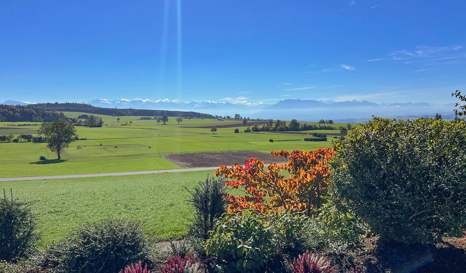 Das Domizil liegt am Ende einer privaten Sackgasse, absolut ohne Verkehr und damit sicher für Kinder. Es grenzt direkt an die Landwirtschafts- und Naturschutzzone, ist unverbaubar und bietet ganztägige Besonnung. Der Blick reicht von den Glarner Alpen über Rigi, Titlis und Pilatus bis zu den Berner Alpen. Auch im Winter geniessen Sie hier oft Sonne und Nebelfreiheit.