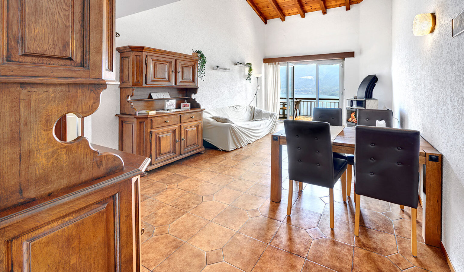 Diese liebevoll gepflegte Wohnung in Brissago bietet alles, was man sich für entspannte Auszeiten im Tessin wünscht: eine atemberaubende Sicht auf den Lago Maggiore, mediterranes Ambiente und einen Innenbereich mit viel Charakter. Die Wohnung befindet sich in einem älteren, aber gepflegten Zustand. Sie versprüht einen heimeligen Charme, der durch warme Farbtöne, sichtbare Holzbalken und liebevolle Details unterstrichen wird.