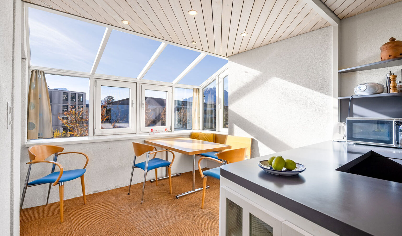 Die Wohnung liegt nur einen Katzensprung vom Dorfzentrum entfernt, in nur 5 min zu Fuss erreichen Sie verschiedene Läden und Cafés.