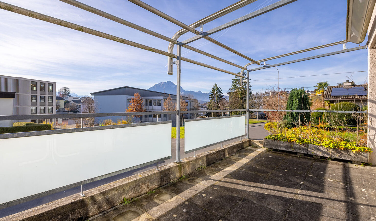 Geniessen Sie entspannte Stunden auf der Terrasse mit herrlichem Ausblick auf den Pilatus oder im eigenen grosszügigen Garten. Von morgens bis abends profitieren Sie hier von sonnigen Stunden in idyllischer Umgebung.