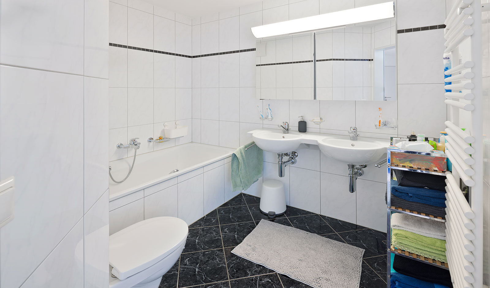 Zwei Badezimmer, davon das eine mit Badewanne und das andere mit Dusche, sowie ausreichend praktischer Stauraum im Eingangsbereich sorgen für ein angenehmes Wohngefühl und hohen Komfort.
