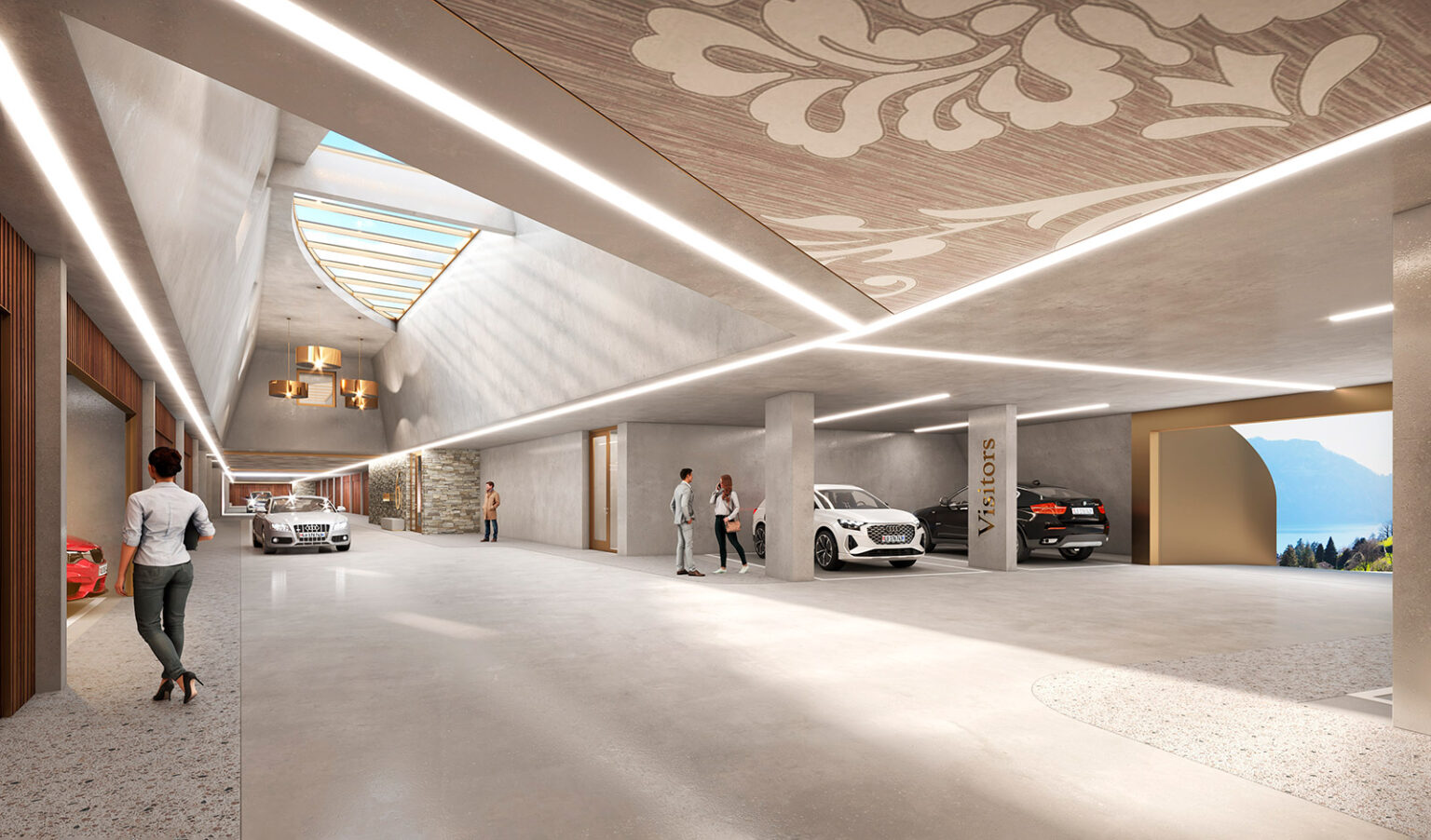 Erschlossen sind alle Wohnungen über eine sehr grosszügige Eingangshalle. Schon hier ist ein grossartiges Heimkommen garantiert, sind doch gleiche Materialien wie in den Wohneinheiten verbaut und eine schon fast wohnliche Ausleuchtung mit einzigartigen Lichtquellen geplant. Es stehen überdurchschnittlich grosse Parkfelder oder geschlossen Doppelboxen zur Verfügung.