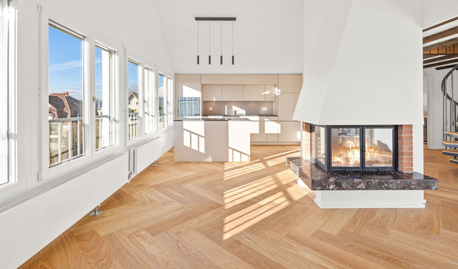 Ihr neues Stadtdomizil erhebt sich oberhalb der Luzerner Altstadt, ennet der ehrwürdigen Museggmauer, im prestigeträchtigen Bramberg-Quartier. Die 5.5-Zimmer-Maisonettewohnung, 2025 aufwendig und mit viel Liebe zum Detail saniert, besticht durch edlen Fischgrätparkettboden, eine stilvolle Küche in Taupe mit hochwertigen Geräten von Electrolux und Bora, überdurchschnittliche Raumhöhen im Wohn- und Essbereich sowie eine grosszügige Fensterfront, die für sonnige Helligkeit und eine schöne Aussicht sorgt.