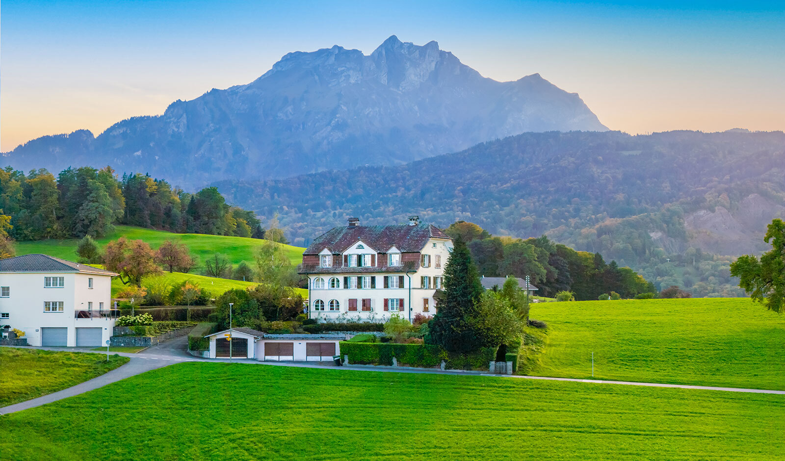 Der Name des 1928 erbauten Hauses könnte nicht passender sein: Luegisland. Von nahezu jedem Zimmer schweift der Blick über saftig grüne Wiesen, den glitzernden Vierwaldstättersee und die majestätische Bergkulisse. Das Anwesen befindet sich im begehrten Felmis-Quartier – einem ruhigen Ort ohne Durchgangsverkehr. Die Liegenschaft grenzt auf drei Seiten an die Landwirtschaftszone, was dem Anwesen ein Gefühl von Weite und ländlicher Noblesse verleiht.