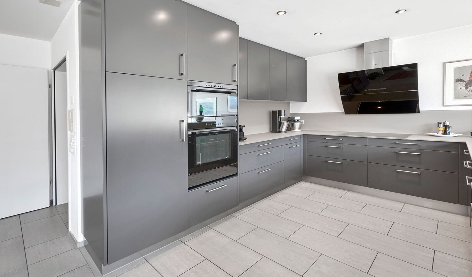 Der Wohn- und Essbereich mit rund 43 m² ist offen, hell und klar strukturiert. Die moderne Küche fügt sich nahtlos ein – kurze Wege, hochwertige Ausstattung und zeitloses Design.