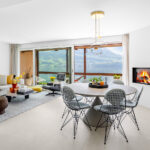 Das Haus verfügt über einen offenen Wohn-/Essbereich mit Zugang zur Terrasse, die mit Blick auf den See ein atemberaubendes Panorama bietet.