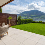 Die Aussenfläche ist ein Traum! Mit einer Größe von nahezu 100 Quadratmetern ist sie perfekt für Personen, die gerne viel Zeit draussen an der Sonne verbringen. Der Rasen ist gut gepflegt und wird regelmäßig gemäht. Dank des warmen Klimas kann er den ganzen Sommer über grün und gesund bleiben. Alles in allem ist es ein wunderbarer Ort, um mit Familie und Freunden zu entspannen und die freie Sicht auf den See und in die Berge zu geniessen.
