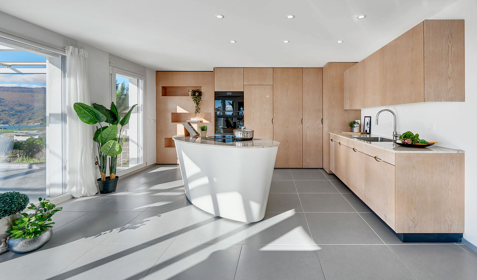 Die weitläufige Sonnenterrasse mit Blick auf den Bielersee, der grosszügige Pool und die mit Trauben bepflanzte Pergola schaffen ein Ambiente, das an den Süden erinnert. Hier lässt sich das Leben geniessen – draussen frühstücken, sonnenbaden, schwimmen oder den Tag mit einem Glas Wein bei Sonnenuntergang ausklingen lassen.